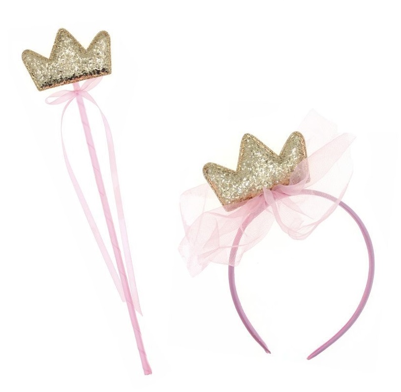 Varita y corona glitter dorado