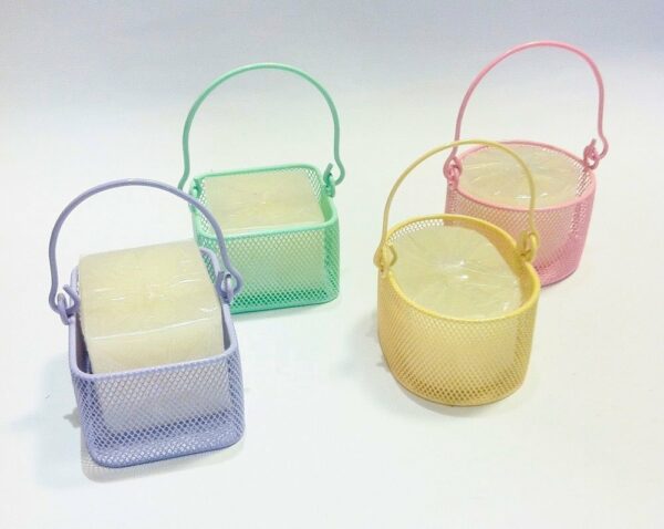 Caja de 4 cestitas metálicas con vela. Formas y dulces colores pastel, surtidos. 9x6x5 cms